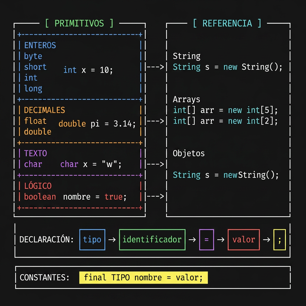 Son los bloques fundamentales del lenguaje que permiten almacenar, manipular y operar información dentro de un programa.
